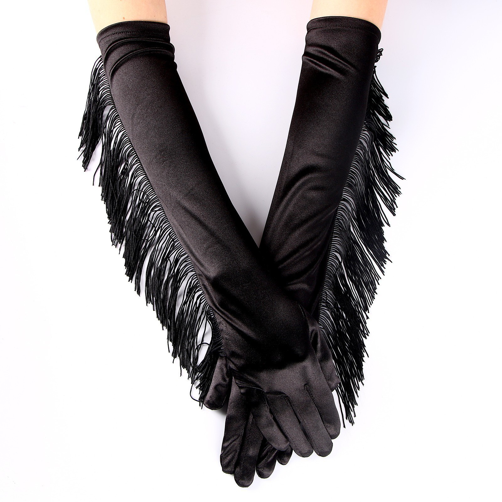 Перчатки с бахромой черный 48см
