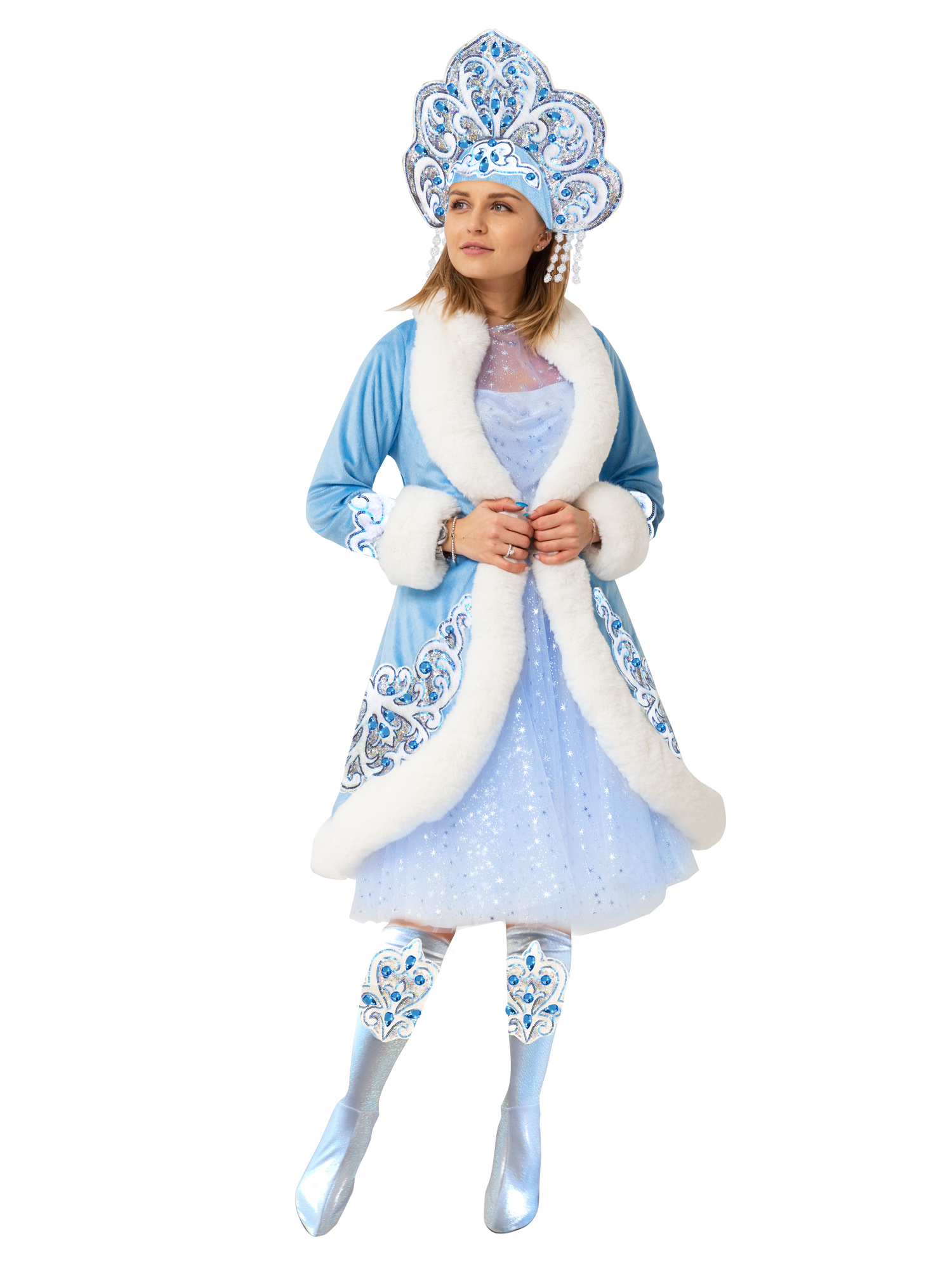 Воздушный и невероятно красивый образ внучки Деда Мороза выполнен в голубом цвете.