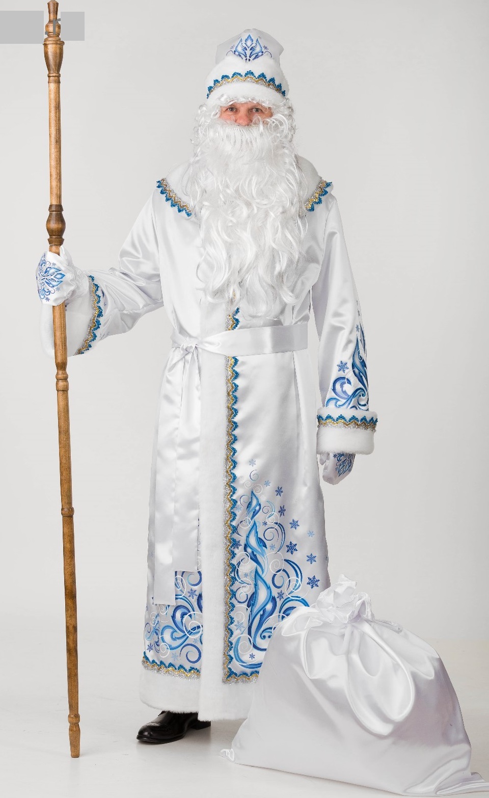 Костюм Деда Мороза сатин аппликация белый