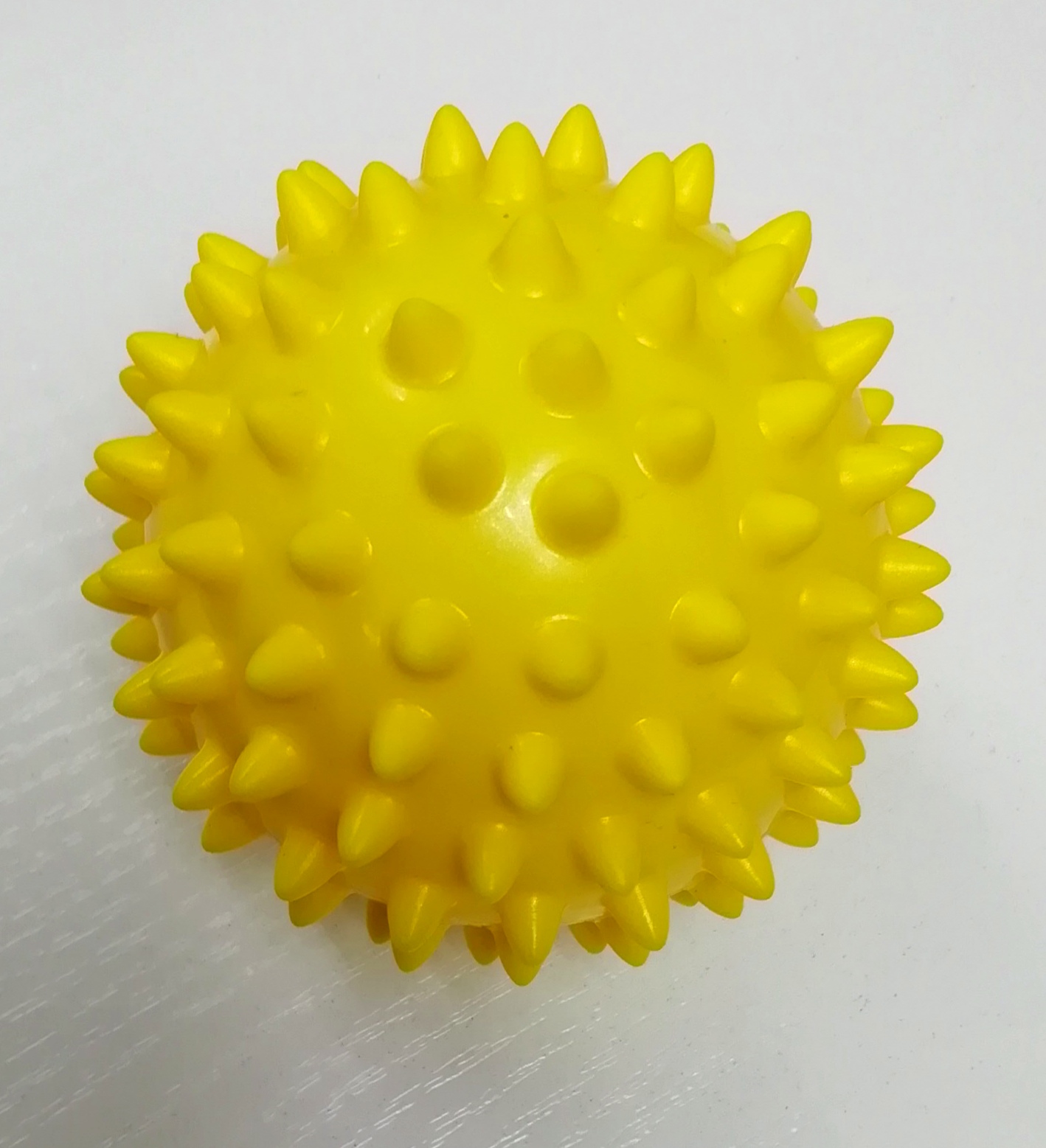 Игольчатый мяч подходит для массажа шеи, головы, рук, стоп.