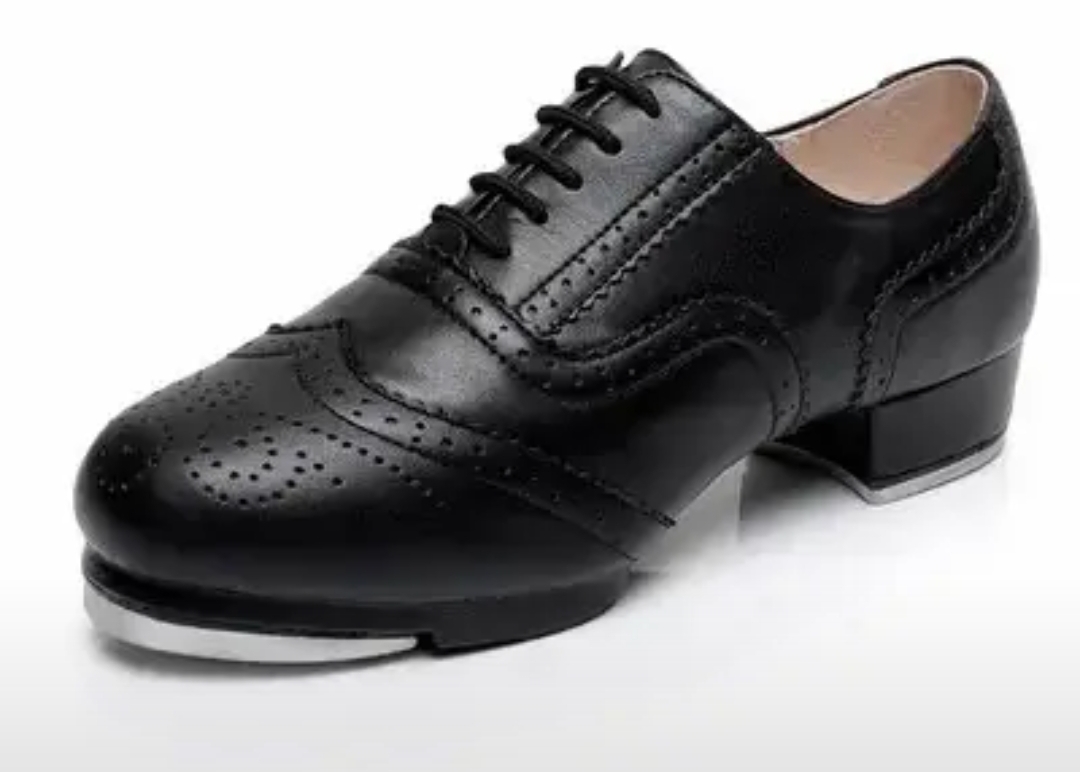 Обувь для степа из натуральной кожи — это профессиональная танцевальная обувь с плотной фиксацией (шнуровка/ремешок) и установленными металлическими набойками на носке и каблуке.